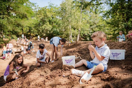 Der einzigartige Schaustollen nimmt Sie auf eine mystische Reise zur größten freigelegten Amethyst-Ader der Welt mit, während im Edelsteinhaus die eindrucksvollsten Edelsteine aller Kontinente warten sowie die weltweit einzigartige Sonderausstellung „KRISTALLSCHÄDEL - Schlüssel zu verborgenen Welten?“. Auf dem Schatzgräberfeld können Abenteurer selbst nach dem violetten Edelstein schürfen oder in der überdachten Goldwaschanlage mit der traditionellen „Goldpfanne“ auf Schatzsuche gehen. Österreichs erster Chakren-Kugelbahnweg und die Wasserspiel-Anlage lassen im schattigen Amethyst-Park mit Spiel, Spaß und Action in die Welt der Edelsteine eintauchen. www.amethystwelt.at